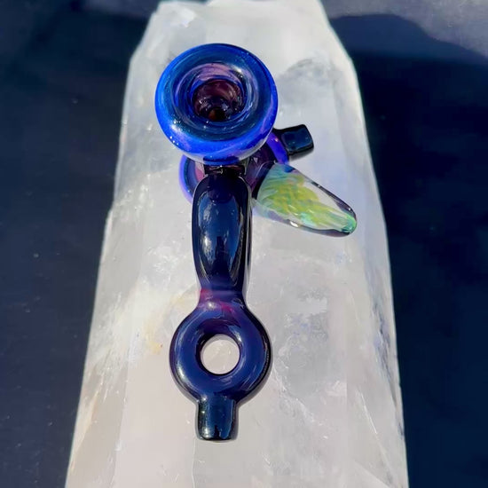 This piece is made with a double layer tube of Blue Phoenix over Galaxy Blaxk, accents are in Pink Sylme and Galaxy Black, Implosion Mable on the side