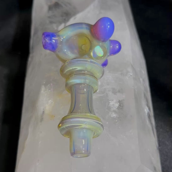 This piece is made from a tube of Lavender layered with Northstar Yellow, accents are in Pink Sylme, Pink Opal on the side