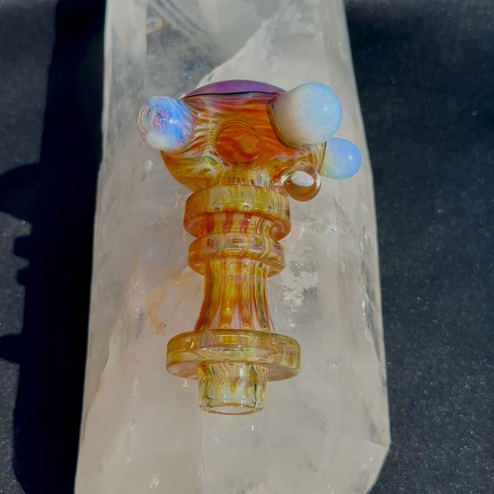 This piece is decorated with a Wrap n Rake using Wild Honey and Amber Purple, accents are in Ghost, there is a Pink Opal on the side