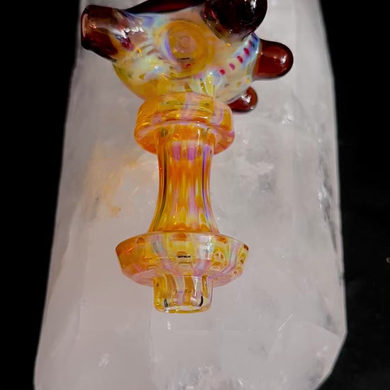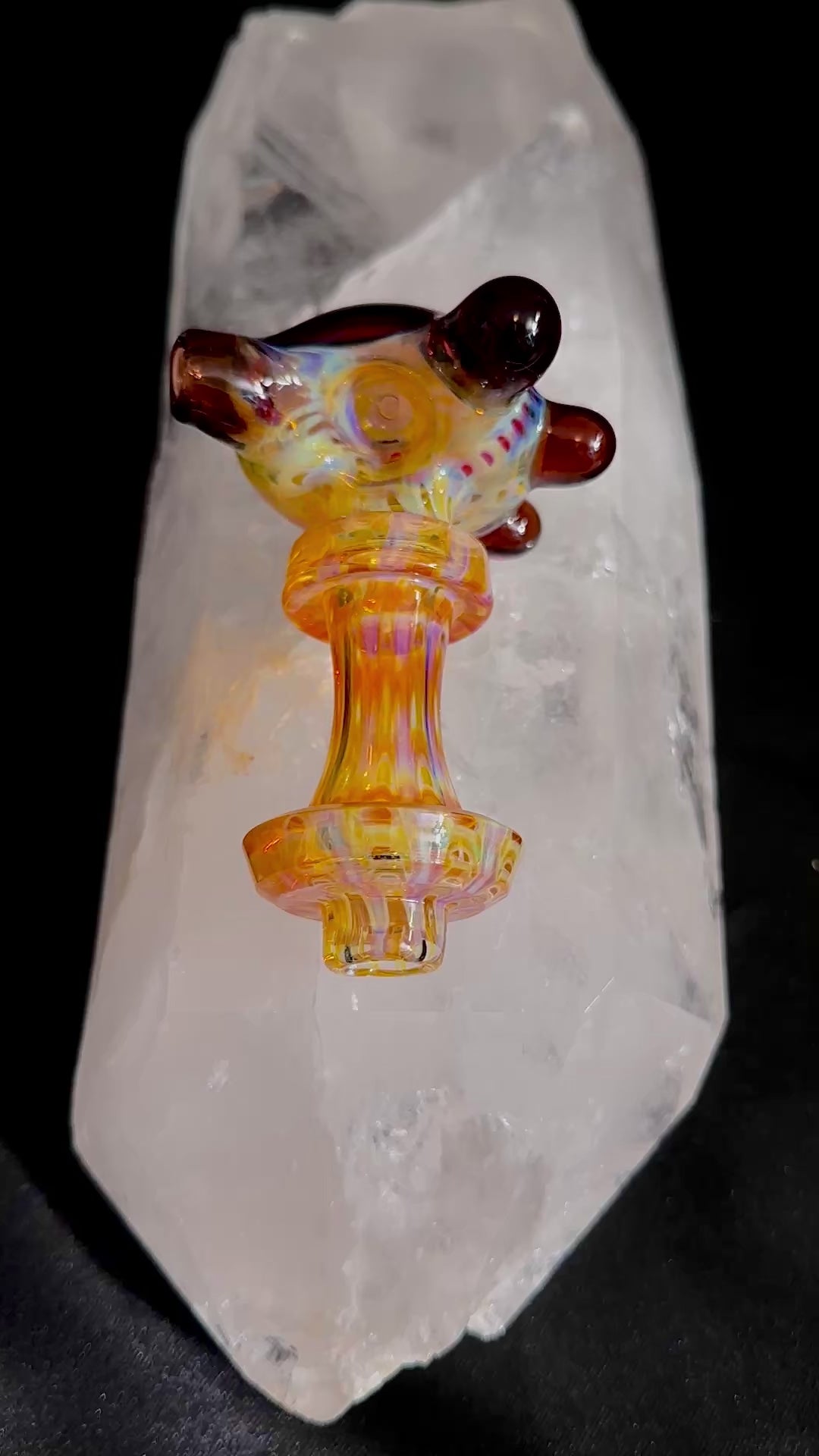 This piece is decorated with a wrap n rake using Honey and Amber Purple, accents are in Brosay and Red Elvis
